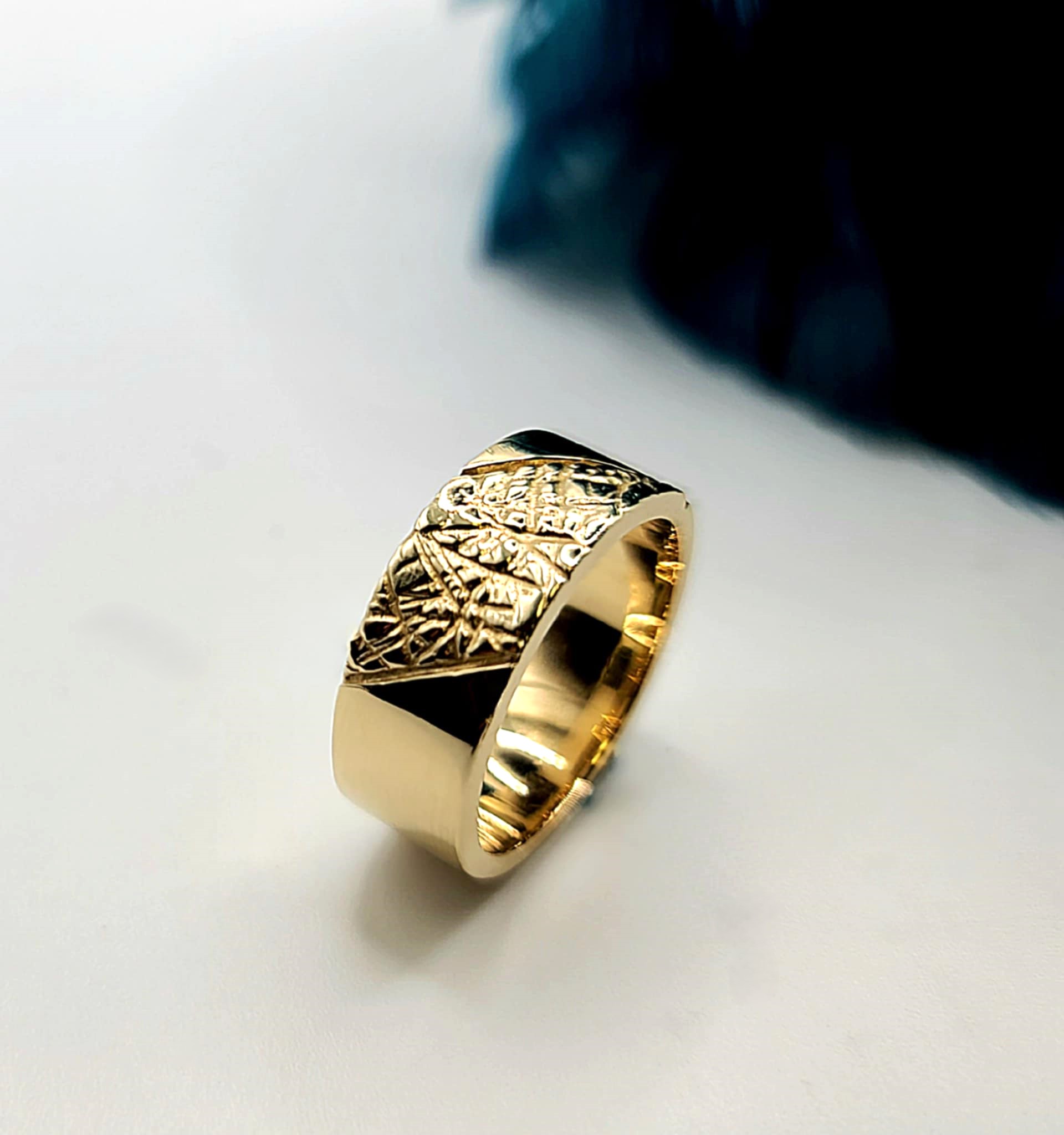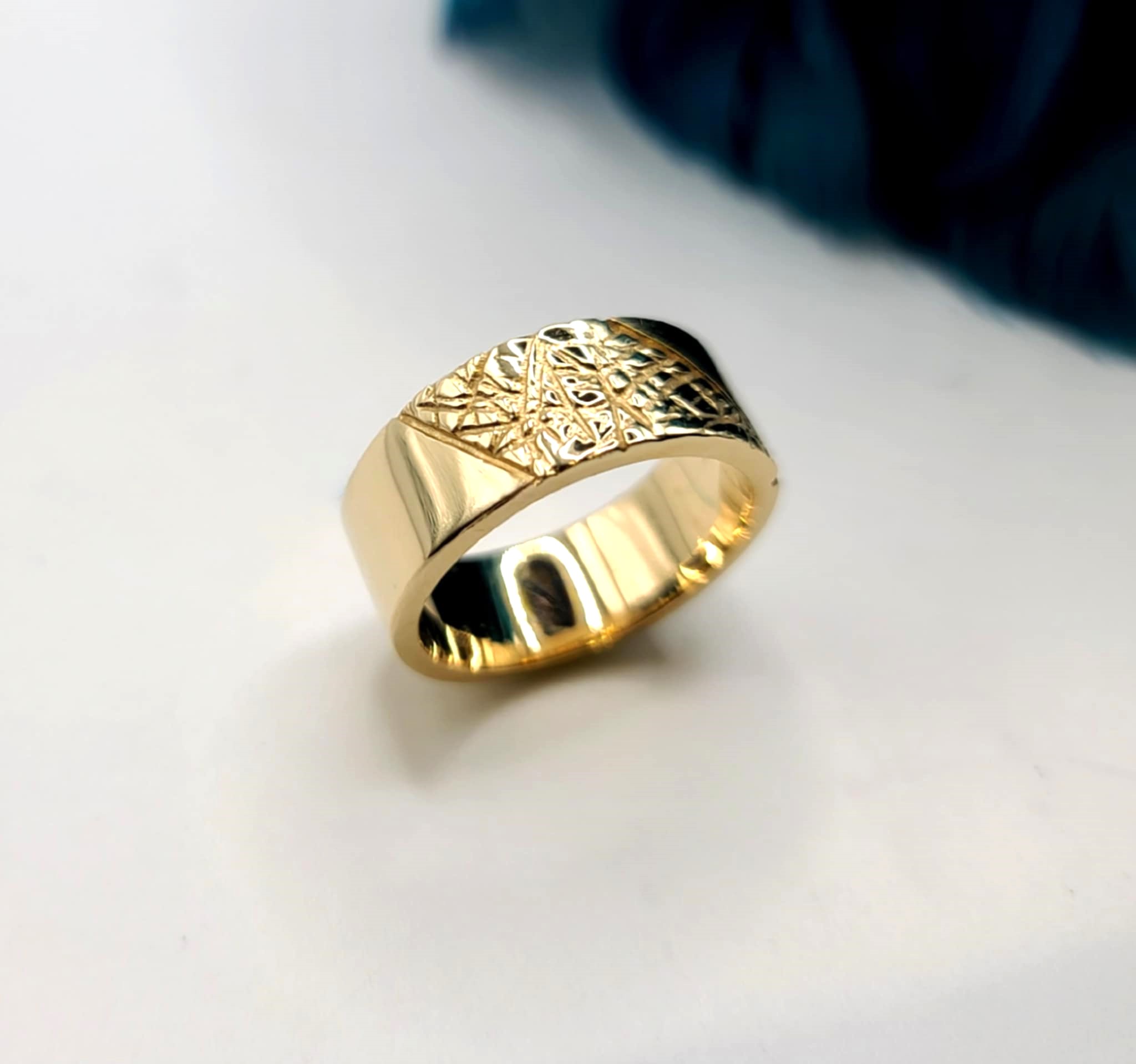 Jonc pour homme en or or jaune 10k texturé peau de crocodile. En or blanc ou rose sur demande.