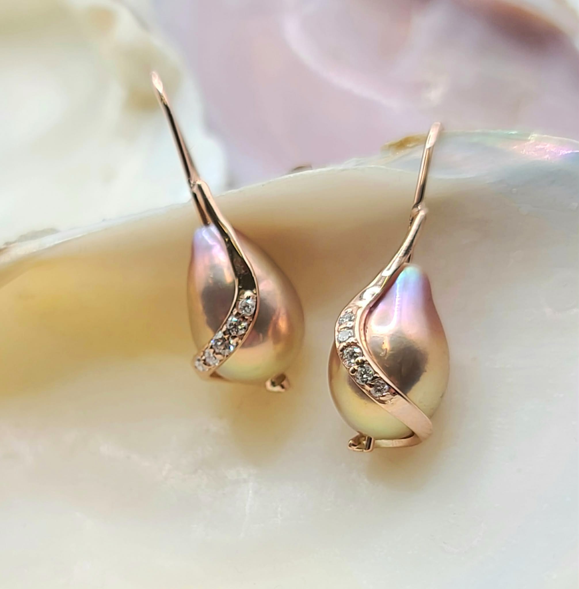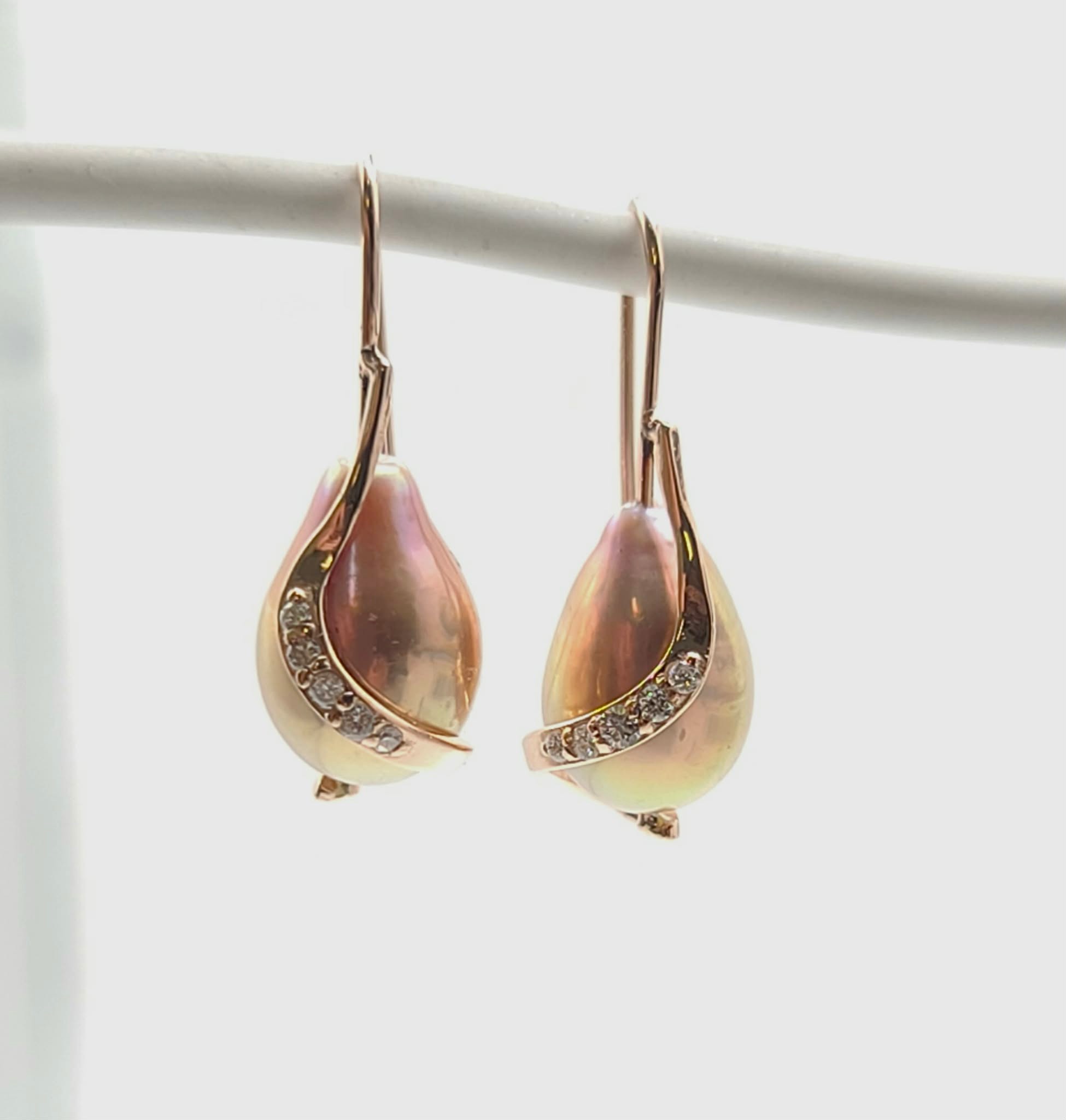 Entièrement faites à la main, en or rose, perles Kasumiga et diamants de lab.